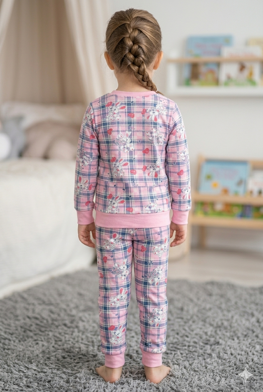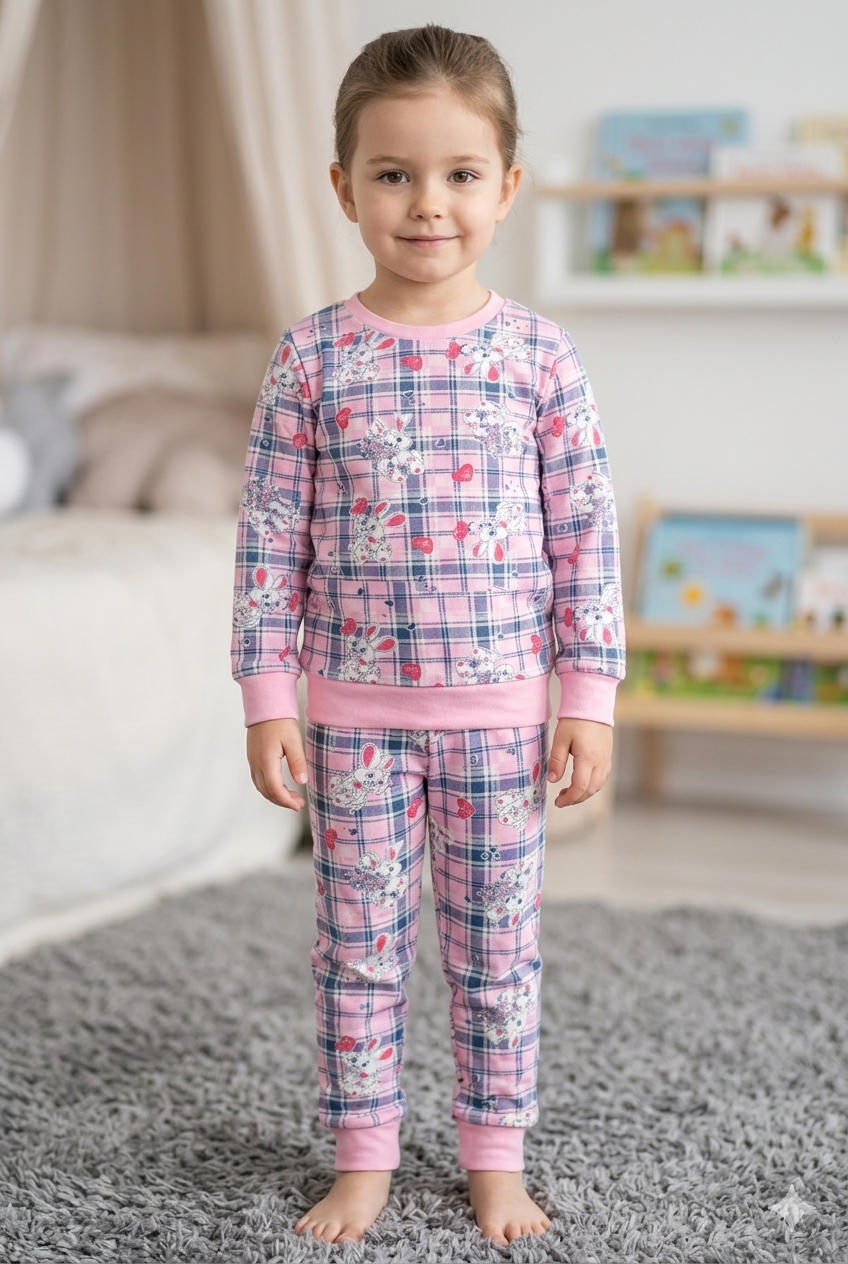 Βαμβακερή Πυτζάμα Ελληνικής Παραγωγής με σχέδιο λαγουδάκι καρδιές