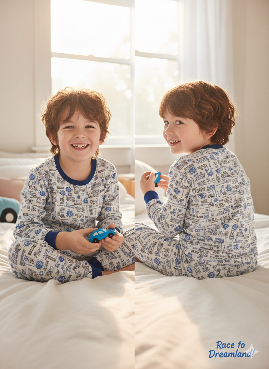 Βαμβακερή Πυτζάμα Ελληνικής Παραγωγής με σχέδιο μηχανές “GO”